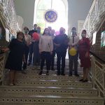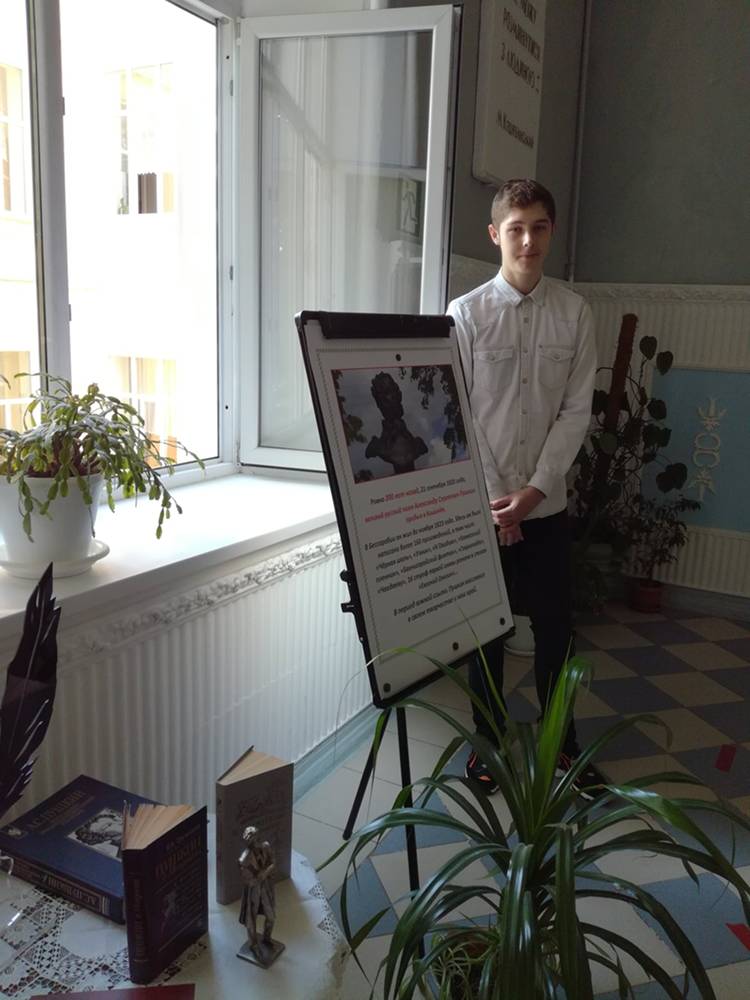 А на парадной лестнице лицея с самого утра была организована выставка книг, рассказывающая о пребывании поэта в нашем крае, здесь же томики стихов, написанные в годы южной ссылки поэта.
