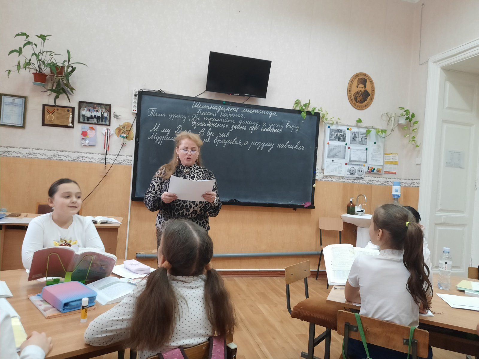 16 ноября в ПУ ТЛ «М. Коцюбинский» прошло два открытых урока украинского языка и литературы, на которых присутствовала инспектор Главного Управления образования примэрии Кишинэу Ляшенко Ольга Васильевна: урок в 4 «А» классе по теме «Очi тримайте донизу, а душу взгору.