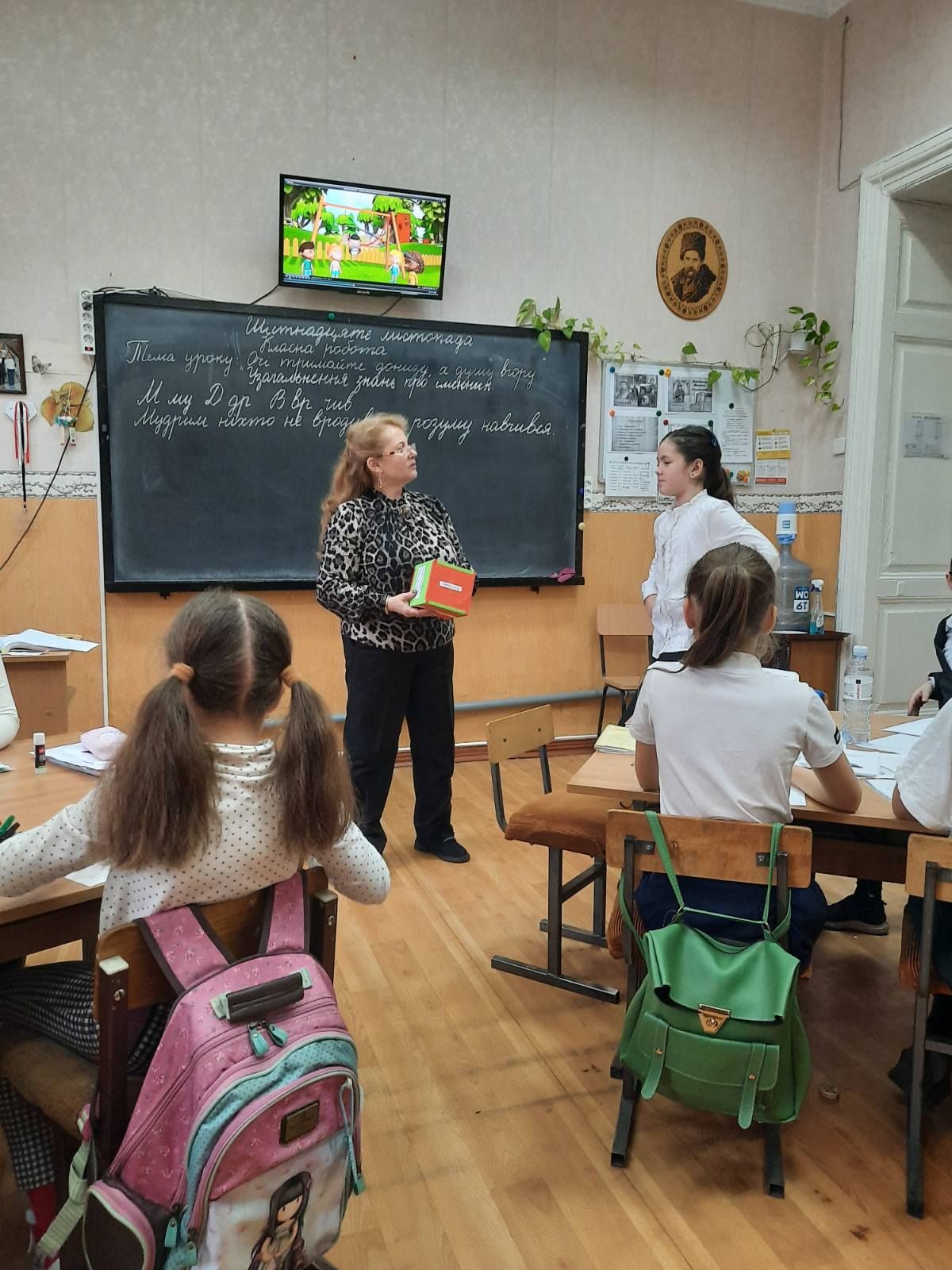 Конечно, мечта каждого учителя – взрастить ученика не только знающим науки, но и хорошим человеком. Мудрые поучения Владимира Мономаха и сегодня современны и актуальны. Четвероклассники сложили на уроке из поучений Великого князя книжку-саморобку. И хочется верить, что они не будут забывать об убогих, станут не гордецами, а приветливыми людьми, с уважением будут относиться к своим родителям и гостям…Семиклассники познакомились с произведением известного украинского баснописца, высмеивающего человеческие недостатки, составили его «паспорт», нашли мораль басни.