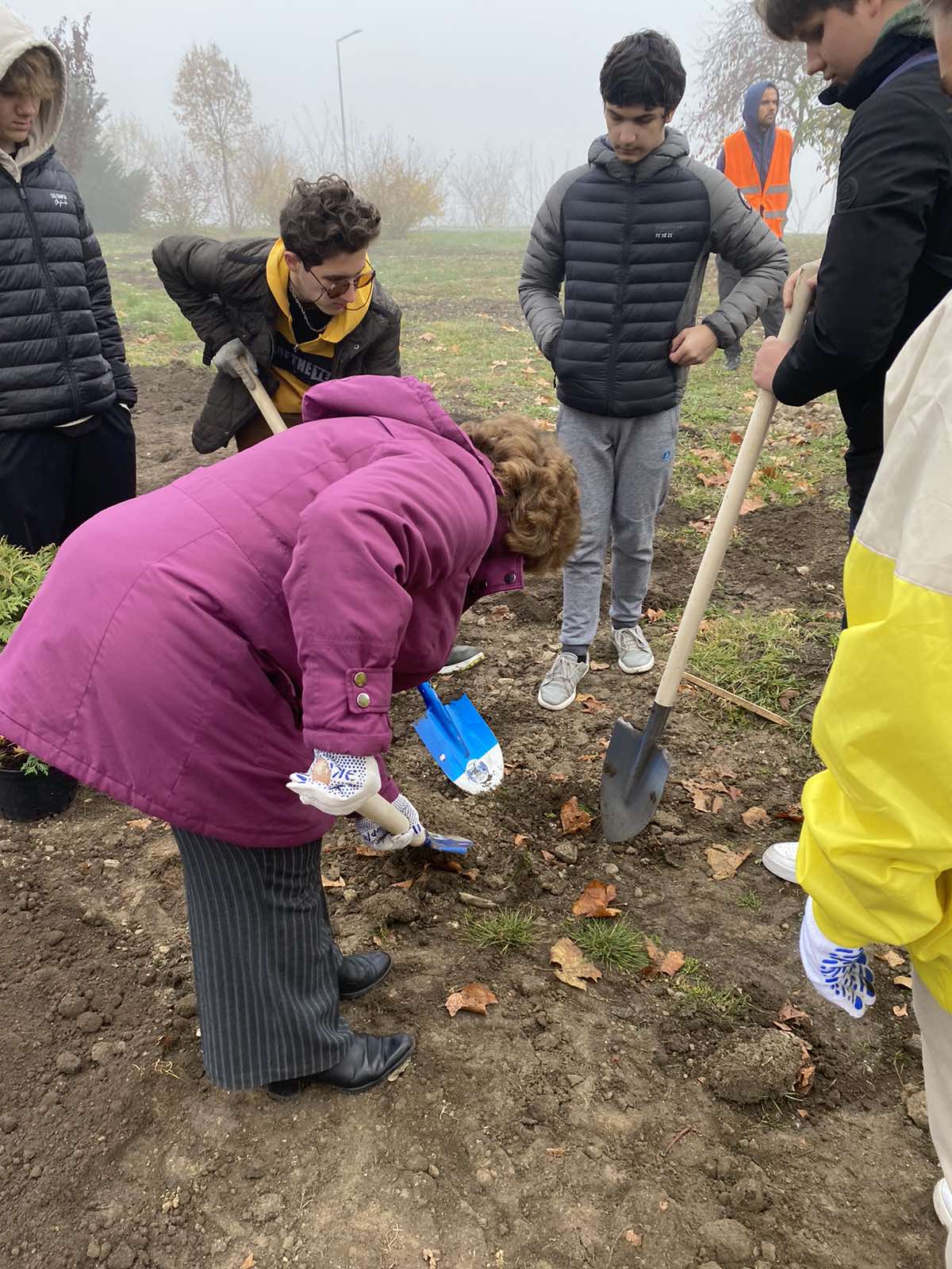 Делемарская Валентина Георгиевна, преподаватель русского языка и литературы, и ученики 11-ых классов нашего лицея, дружно высаживали саженцы деревьев и кустарники туи. Радость переполняла от того, что весной эта аллея будет пышно зеленеть и напоминать о детстве, о дружбе, о мире. Особую похвалу можно выразить Комиссаренко Артуру, Харьковскому Александру, Махриной Веронике; Логин Максиму, Пасевину Валерию, Сокол Дмитрию.