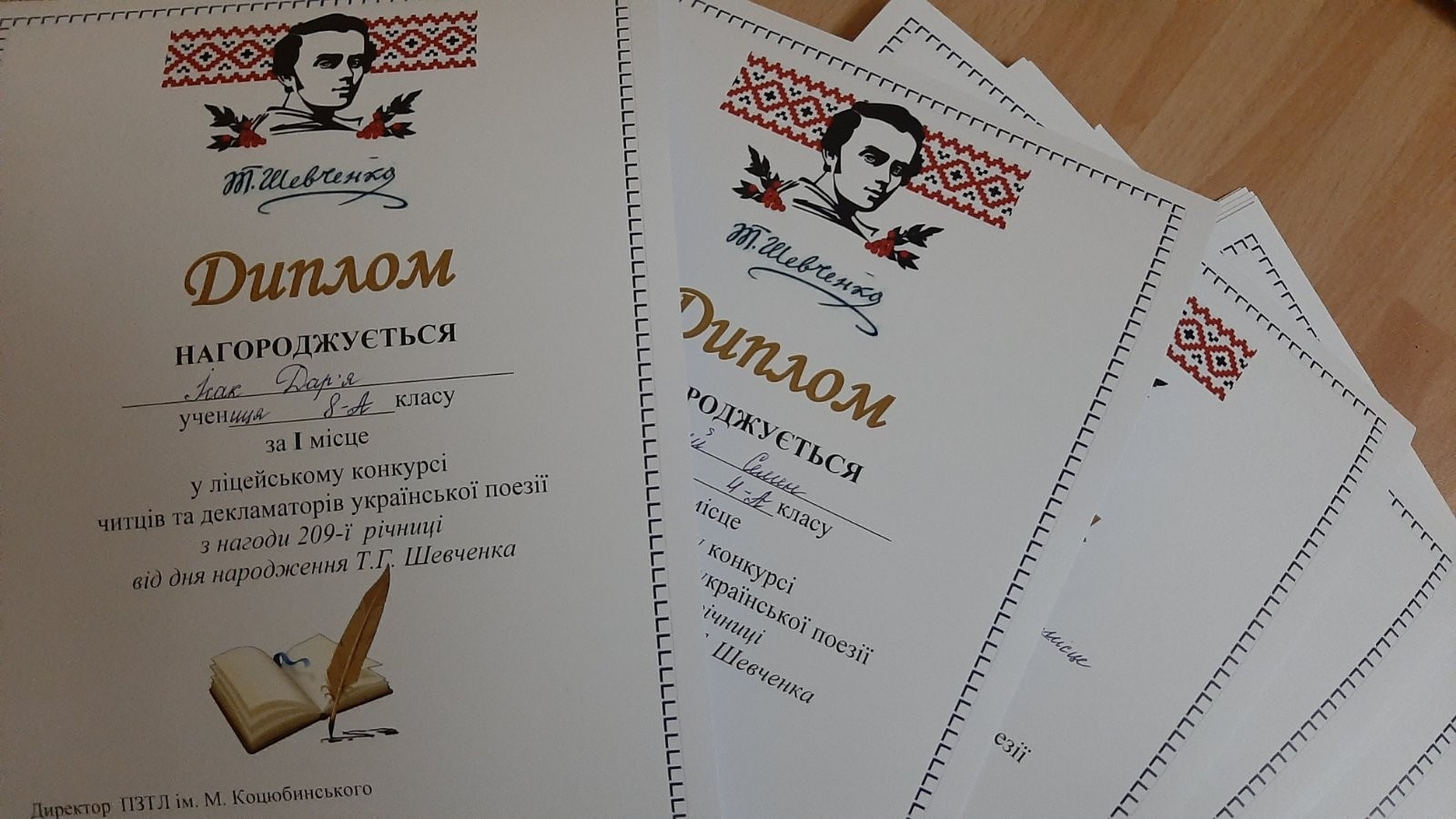 20 березня 2023 року у ПЗТЛ ім. М. Коцюбинського пройшов Конкурс читців поезії Т. Г. Шевченка «Величне слово Кобзаря» серед школярів. Учні 1-10 класів продемонстрували мистецтво живого слова, майстерне виконання, вміння відтворити характер виконуваного твору.