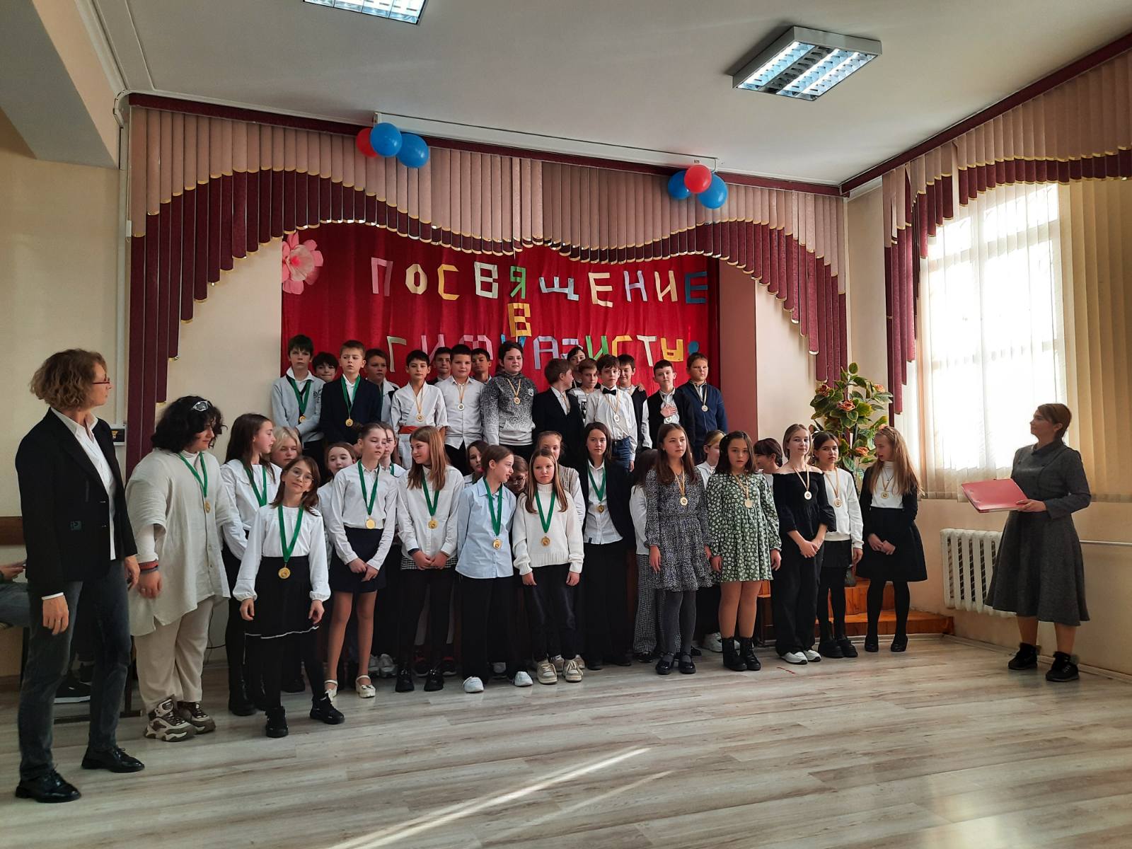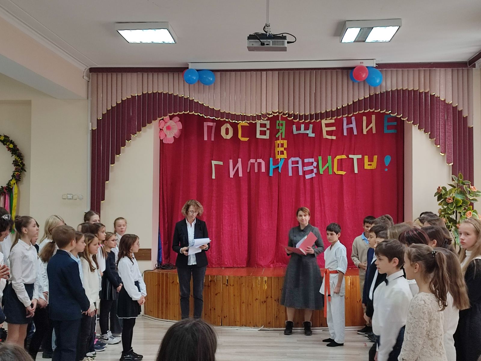 Церемония Посвящения в гимназисты проходила в сказочно-торжественной обстановке, в актовом зале лицея. 5 «А» и 5 «Б» классы представили творческие выступления: пели, танцевали, демонстрировали элементы Каратэ. Это был настоящий дебют пятиклассников, в котором они проявили командный дух и весёлое настроение. Кульминационный момент праздника – произнесение клятвы Гимназиста и вручение каждому классному коллективу медалей гимназистов. А завершили праздник песней про любовь к Лицею, уважение к учителям, к своему труду – учёбе!