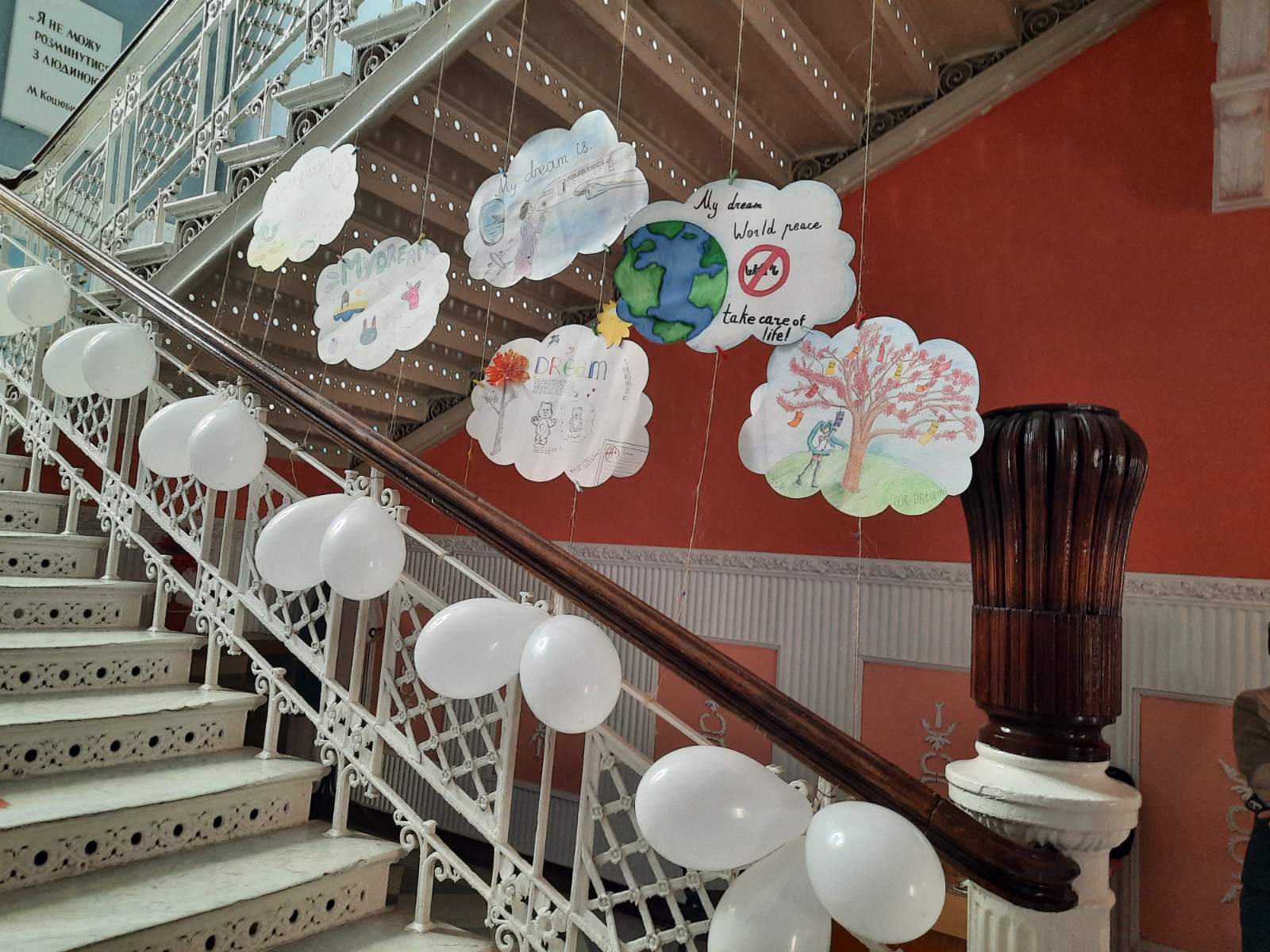 Traditionally, English Language Day is held in our Lyceum every year. This academic year, October the 27th, was entitled „I have a dream”. Literally everything was inspired by the atmosphere of dreams. The central staircase was decorated with students’ works in the form of clouds, which depicted everything they dream about and what they want to achieve. During the day, teachers held exciting events where high school students talked about how they turn their dreams into reality. And the younger students made an imaginary space trip and got acquainted with the planets of the solar system. The day was fun, exciting and useful.